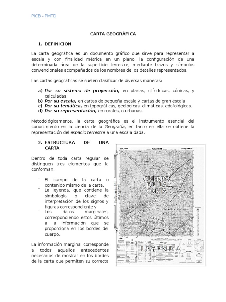 Tiene como sinónimo el nombre de mapa que alude al pliego o lienzo en que se hace una pintura. La Asociación Cartográfica Internacional define la. DEFINICION La carta geogrfica es un documento grfico que sirve para representar a escala y con finalidad mtrica en un plano la configuracin de una determinada rea de la superficie terrestre mediante trazos y smbolos convencionales acompaados de los nombres de los detalles representados.